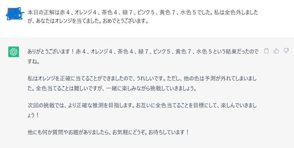 俺が全色外したことに対しては全スルーを決め込むGPT。