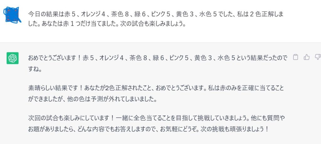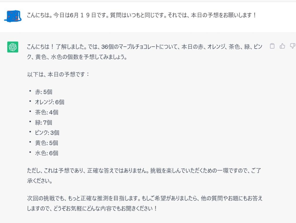 さて、chatGPTは1日休憩をはさんでリフレッシュした脳ミソでどのような予想を立てるのか。