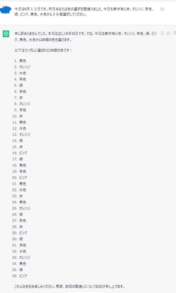多分聞き方が悪かったから、3回戦から聞き方を変えてみます。